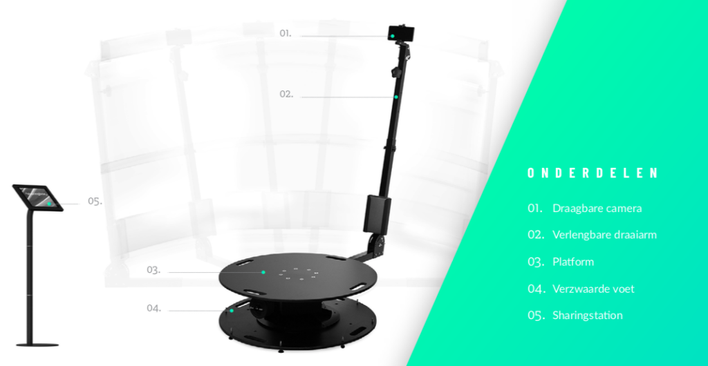 • Deze 360 videobooth huren
