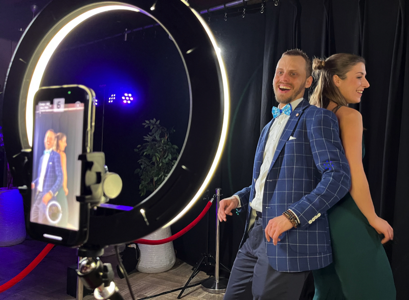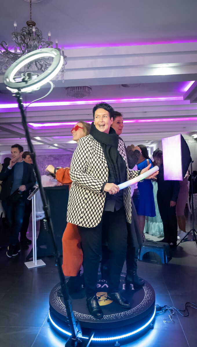 Als een fotospiegel niet hip genoeg is voor je, dan moet je een 360 video huren! Een 360 ‘spinner’ is de nieuwste rage in photoboothland en zal je in het trouwseizoen van 2024 ongetwijfeld een stuk vaker gaan tegenkomen en zeker ook op de socials, waar de 360 video’s al een tijd de ronde doen! Hoe de 360 video werkt? Een ‘arm’ met een telefoon er aan gemonteerd draait rondjes om een platform waar 1 tot wel 5 mensen op staan te dansen. De telefoon met ringlight maakt een video van de mensen op het platform. Vervolgens wordt de video voorzien van effecten (zoals slowmotion of juist ‘fast forward’), een videoframe en achtergrondmuziek, waarna je hem kan delen via je eigen mobiele telefoon via een QR code of andere online sharing optie.