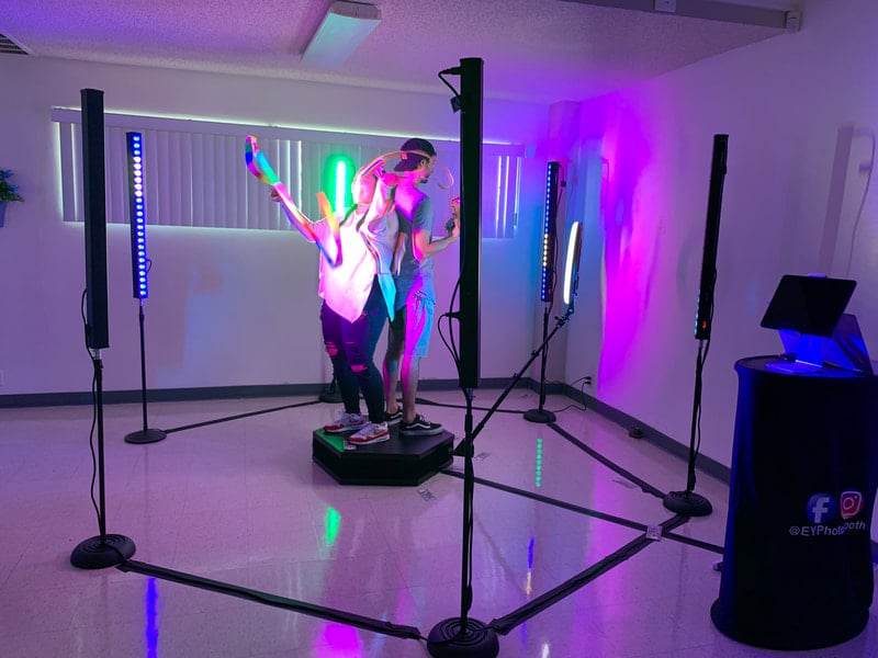 - 1-4 gasten kunnen tegelijk op het platform van de 360 videobooth staan